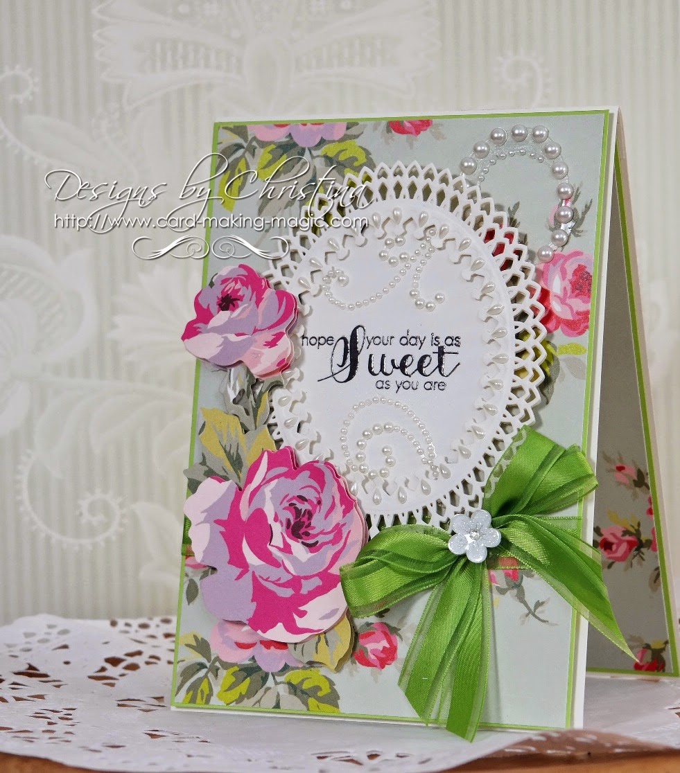 ReplyDeleteVery pretty Christina, with beautiful flowers , i have some Anna Griffin papers in my stash i must get them out again, it does seem as when you go on to another style you seem to forget the papers etc you used to craft with .